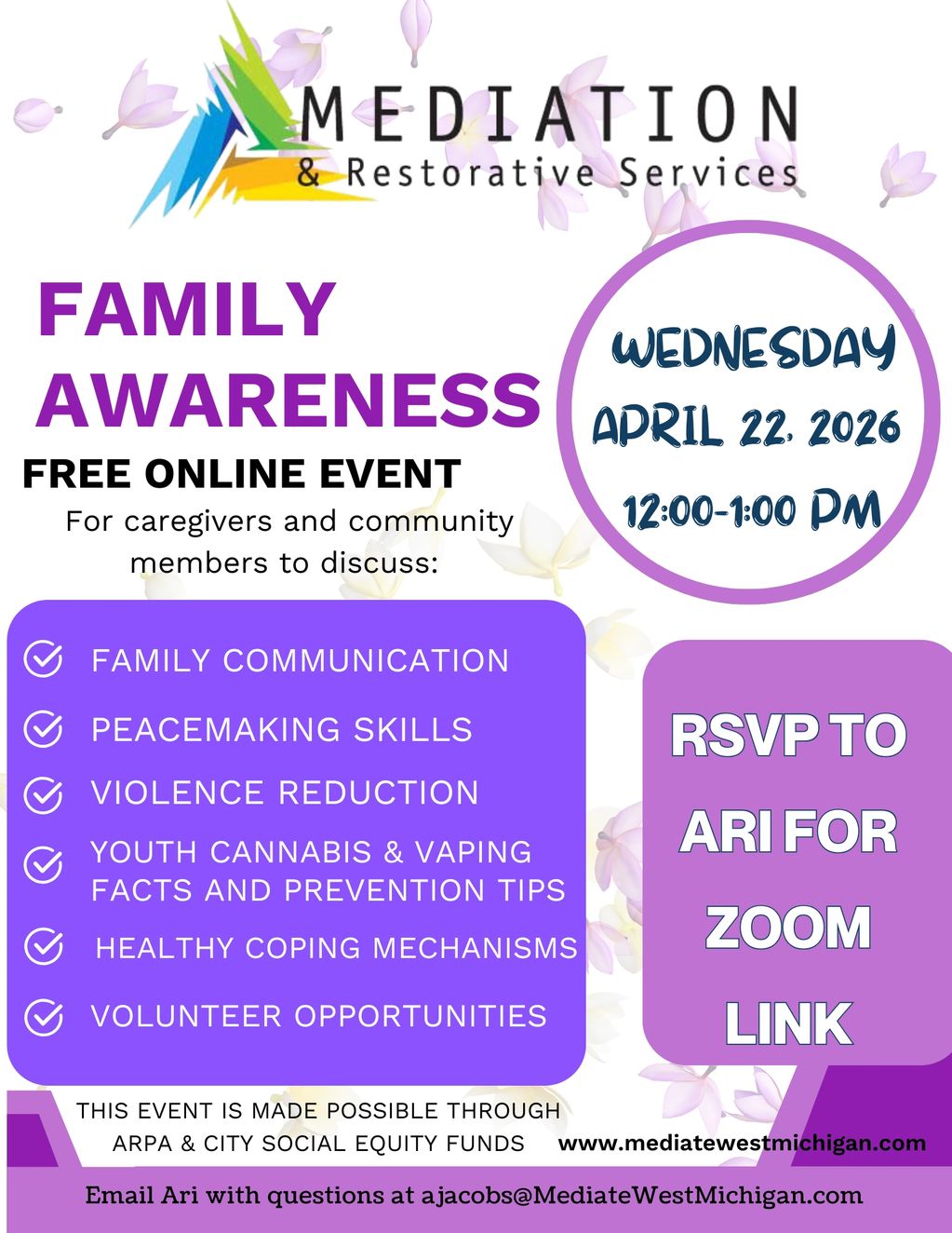 Join us for a virtual Family Awareness Event on Wednesday, April 22, 2026, from 12:00-1:00
